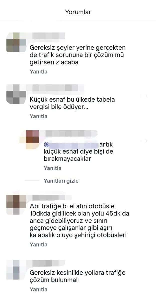 Bir yurttaş, “Belediyenin binası değil ki o dükkânlar! Vergilerimizle şahıs tabelası mı yapılır? Kuralları koy, esnaf kendi yapsın” diyerek kamu kaynaklarının adil kullanılmadığını savundu. Bazı yorumlardaysa tepkiler doğrudan siyasi eleştiriye dönüştü: “Bu kadar halktan uzak bir belediye başkanı olabilir mi? Sadece gösteriş yapıyorsunuz. Seçim yaklaşınca halkın tepkisini göreceksiniz.”