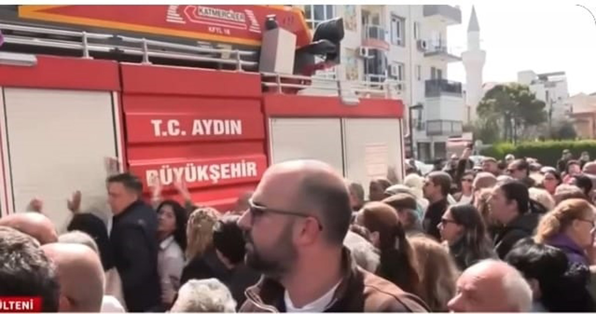 CHP'den AKP'ye geçen Özlem Çerçioğlu'na bağlı Büyükşehir Belediyesi itfaiye araçları Kuşadası Belediye Başkanı Ömer Günel'in gözaltına alınmasına tepki için Kuşadası Belediyesi önünde toplanan kalabalığı engellediği gözlendi.