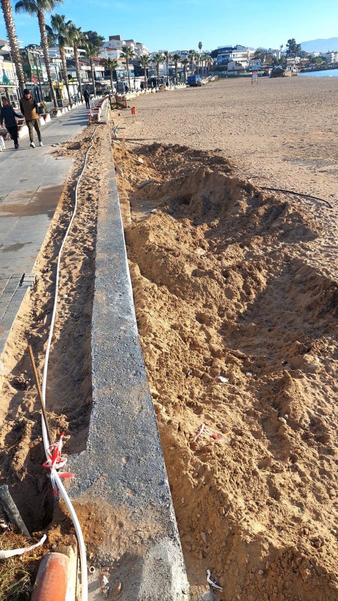 Kılıç, yaptığı açıklamada, istinat duvarı ile yürüyüş yolu arasında kalan çukur alanın Altınkum’un “Eşi benzeri olmayan, pırıl pırıl doğal kumlarıyla” doldurulduğunu gördüğünü ifade ederek şu soruları yöneltti: