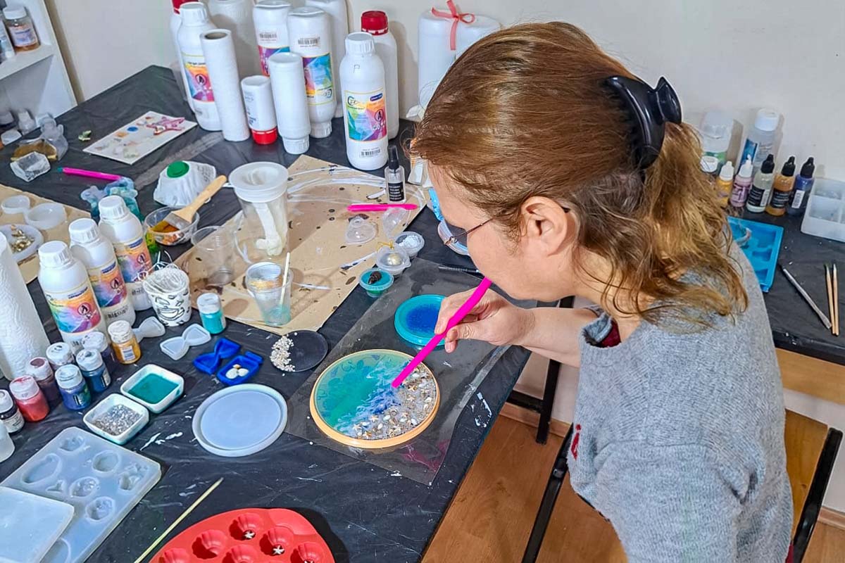 Efeler Belediyesi’nin, Efeler Halk Eğitim Merkezi iş birliğiyle hayata geçirdiği kurslar, kadınların yeteneklerini keşfetmelerine ve katma değer üreten ürünler ortaya koymalarına imkân tanıyor. Epoksi Kursu kapsamında kursiyerler; dekoratif ürünlerden takı tasarımına kadar birçok alanda uygulamalı eğitim alarak üretim sürecine dahil oluyor.