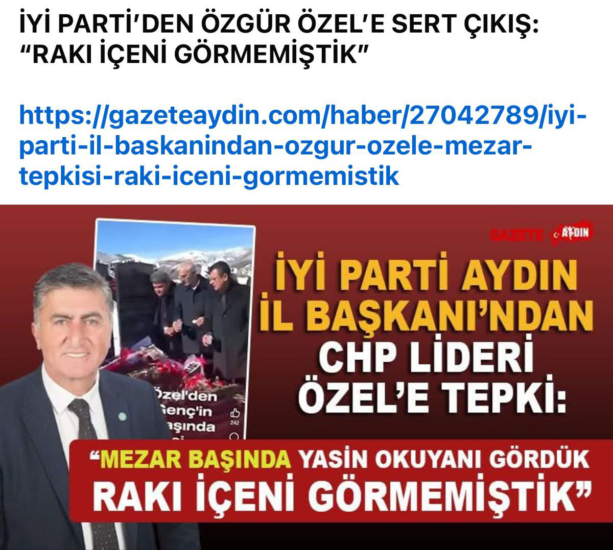 Öte yandan Ahmet Ertük'ün AKP’li Çerçioğlu'nun adı sürekli skandal iddialarla, haksız servet edinimiyle, yüzlerce milyonluk kaçak malikanesiyle gündemde olan ve de Aydın 4. Ağır Ceza Mahkemesi'nde çeşitli suç isnatlarıyla yargılanan Ozan Çavuşoğlu ile aynı kulvarda koşmasını ağır dille eleştiren İYİ Partililer, “Çavuşoğlu'ndan sonra Ahmet Ertürk onbaşıoğlu mu olmuş?” sorusunu yönelttiler.